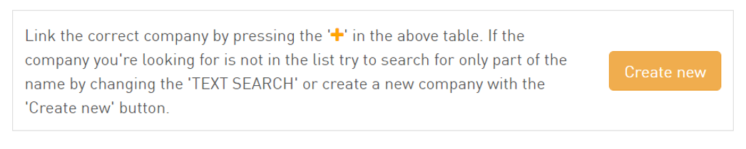 If the list now shows a company which is correct click the orange plus sign in the left hand column to link.