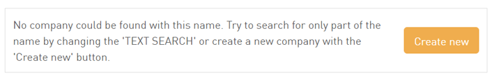 If you do not find the company use the "Create new" button and create the customer from scratch by adding all information Enterprise needs.