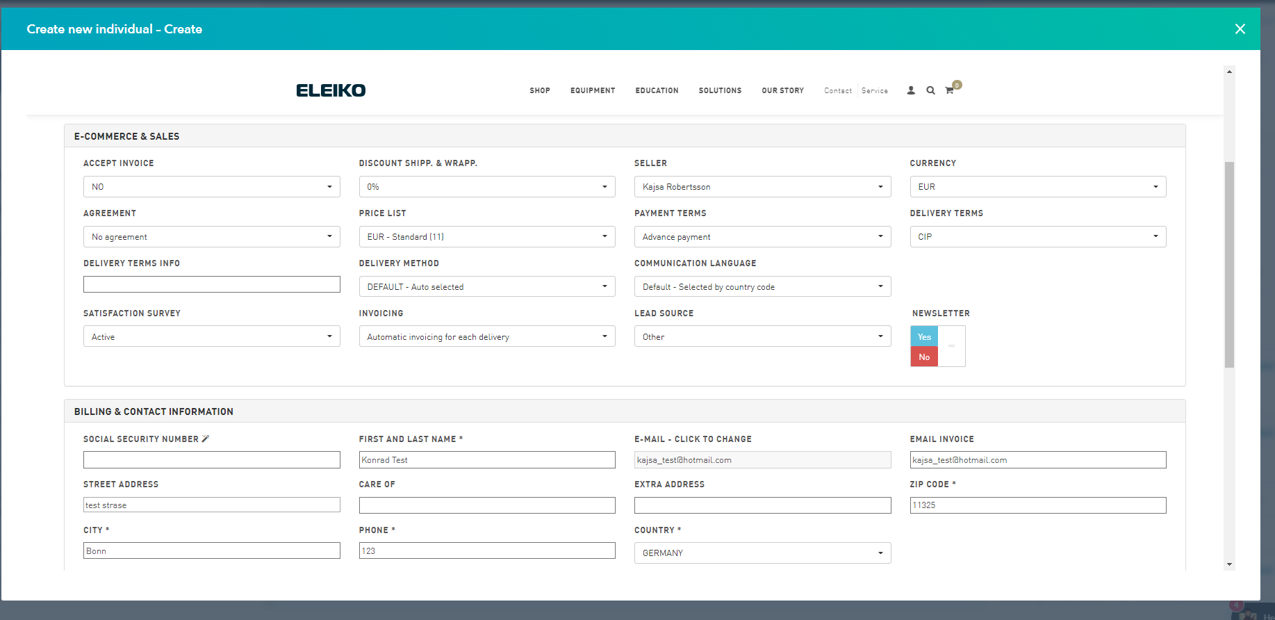 Under Enterprise info in the right hand column, can see that the Contact now is linked to a Private person (Type: Customer) in Enterprise.