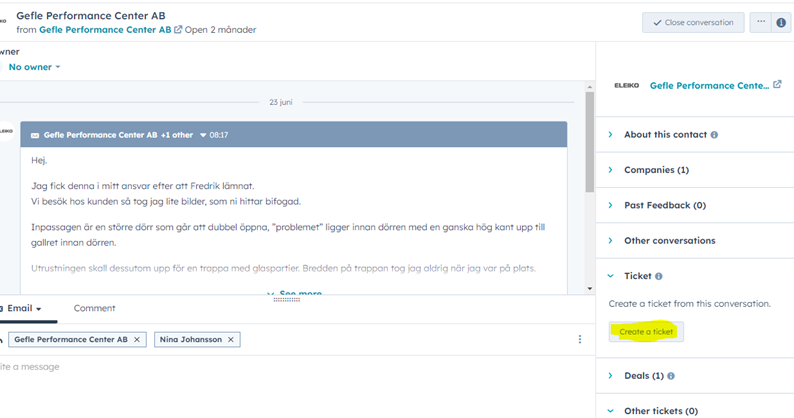 If you already have a ticket about the installation/custom design/case and an email arrives that is not connected to that ticket you can merge the tickets manually.