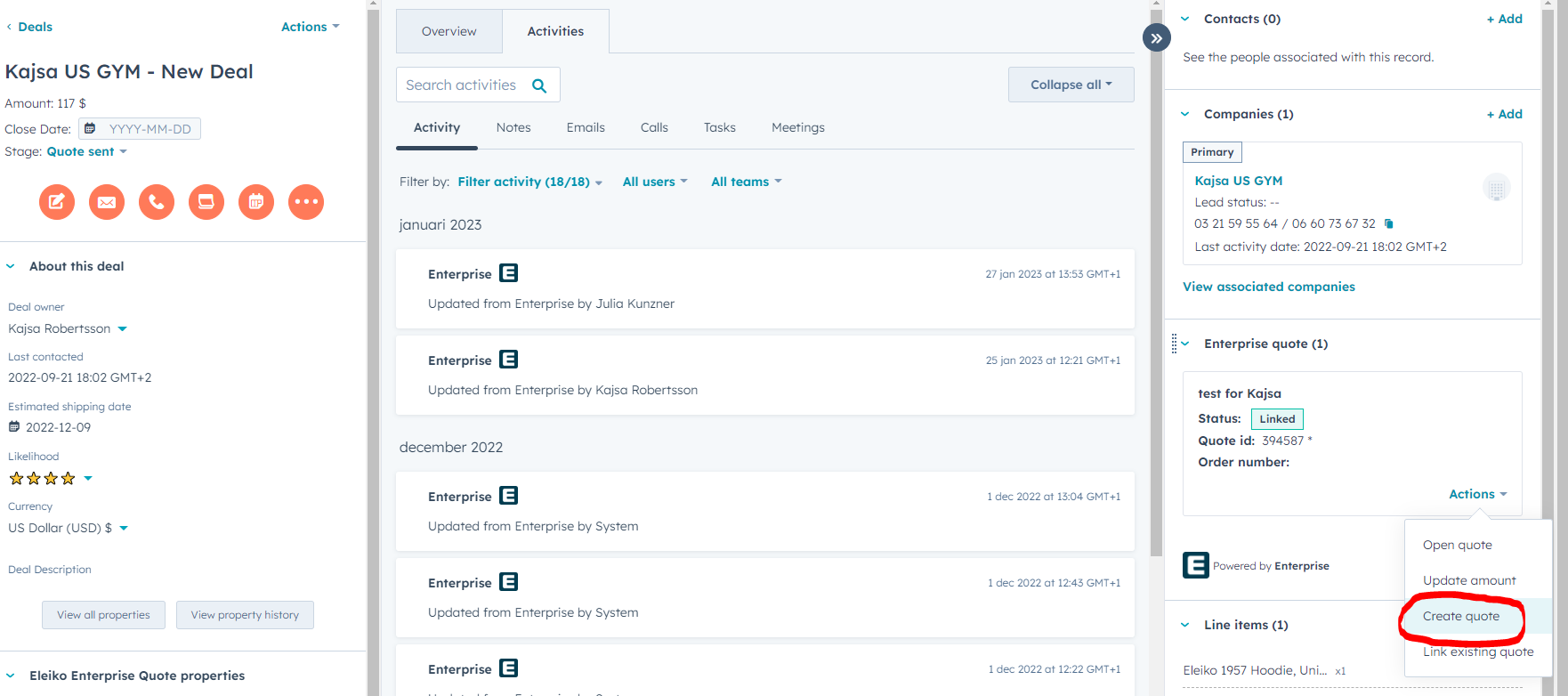 This means Eleiko will have 100% correct data, and also your personal won/loss ratio is correct if you set up one deal with multiple/master quote.