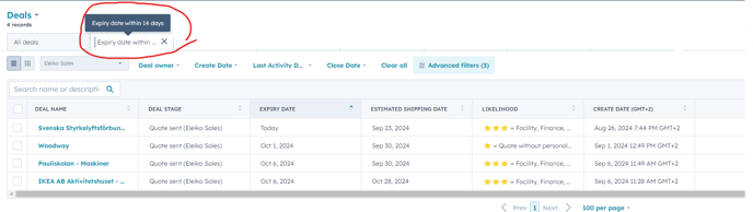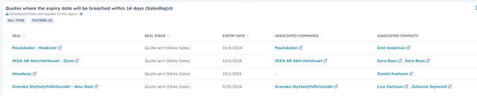 - You can view it in your dashboard "Eleiko Sales Representative Dashboard (Your currency)" in the report "Quotes where the expiry date will be breached within 14 days"