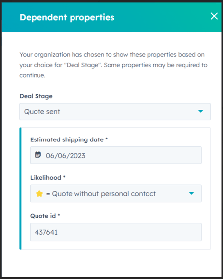 When you do update the Deal Stage you will be asked to review the Estimated Shipping date and Likelihood to make sure Purchasing has the best possible data to work with.